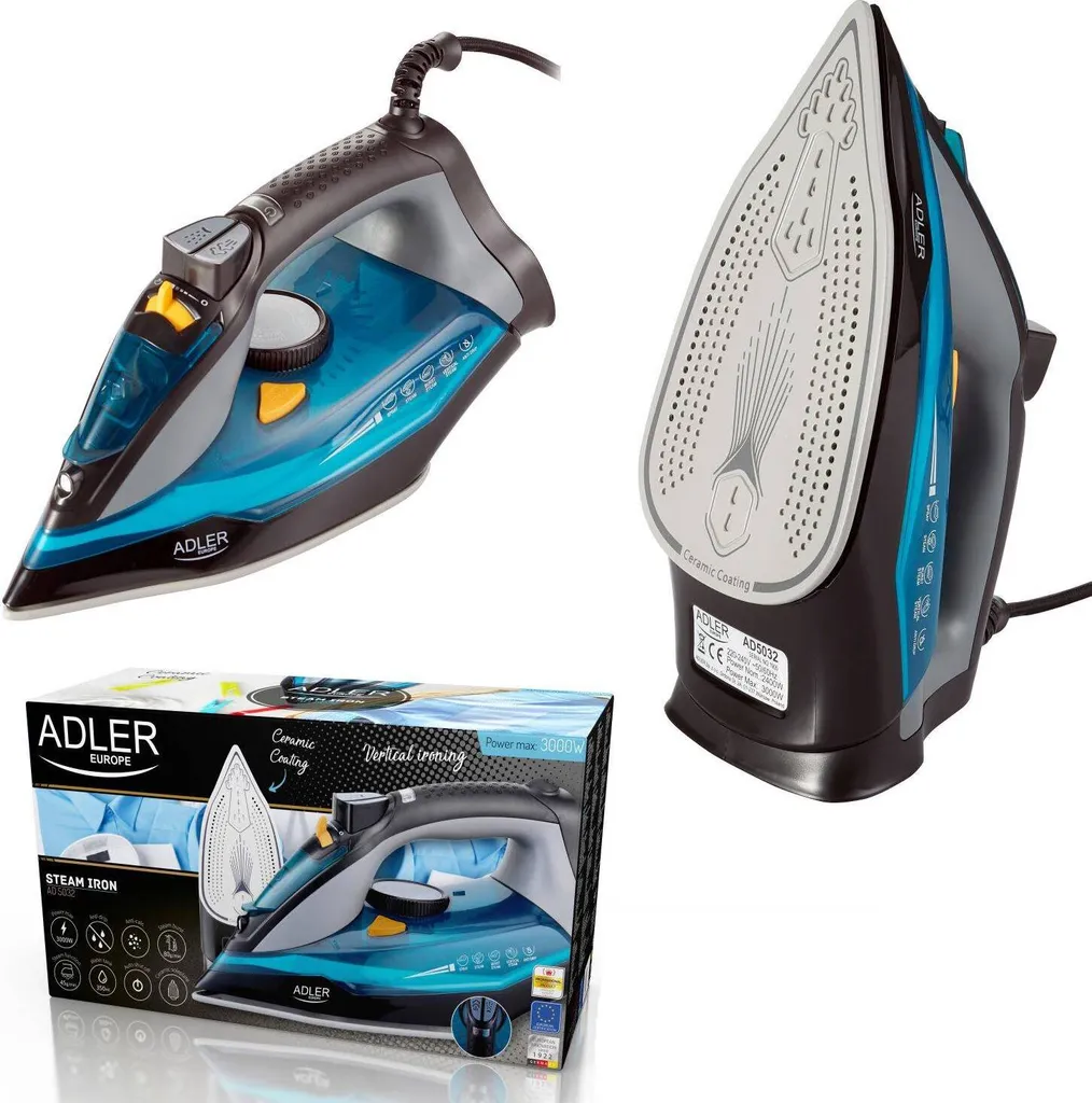 Adler Ad 5032 Bügeleisen Trockenbügeleisen Keramiksohle Schwarz, Blau, Grau 2400 W