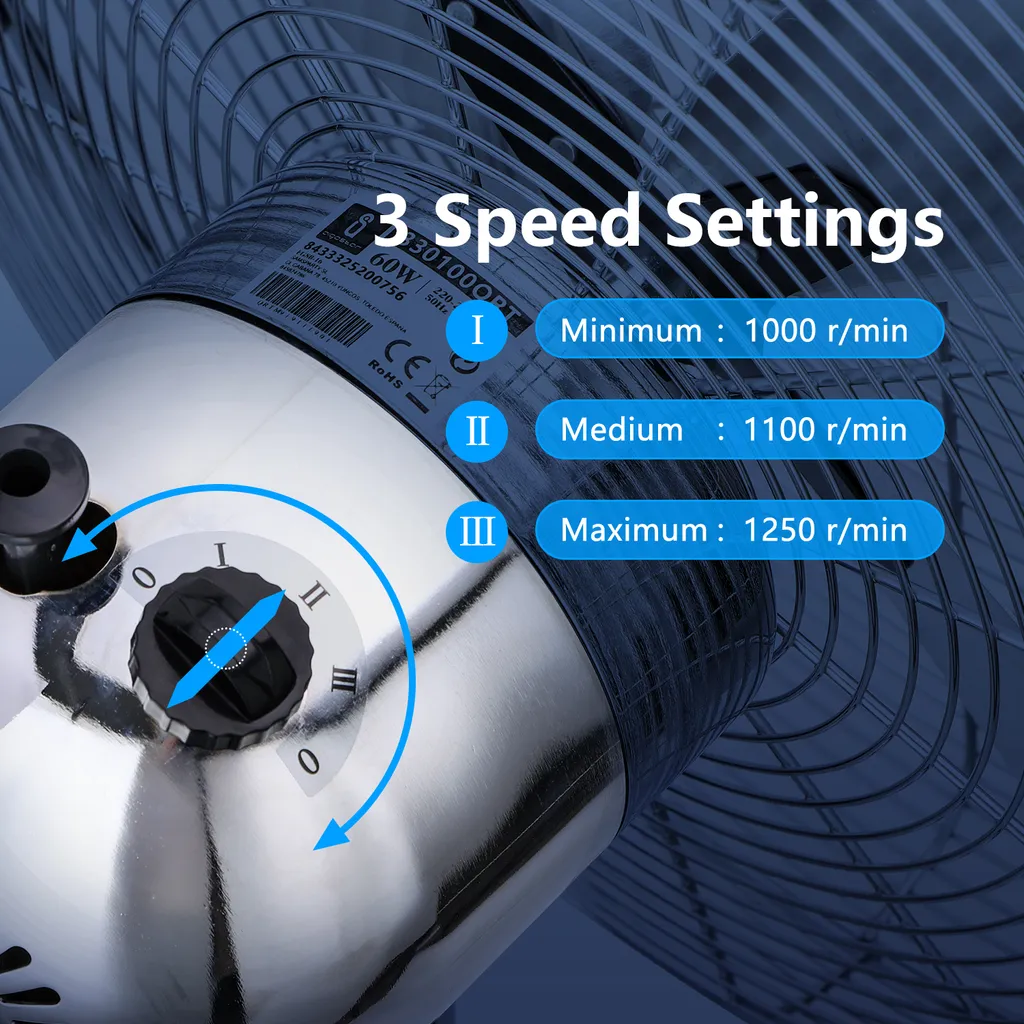 Aigostar Emery – Ventilator Standventilator Metall Mit Oszillation 90° Im Chrom -Design – Höhen Verstellbarer Standfuß Industriell Mechanisch Standlüfter 3 Geschwindigkeit 4 Blätter 60 Watt Silber