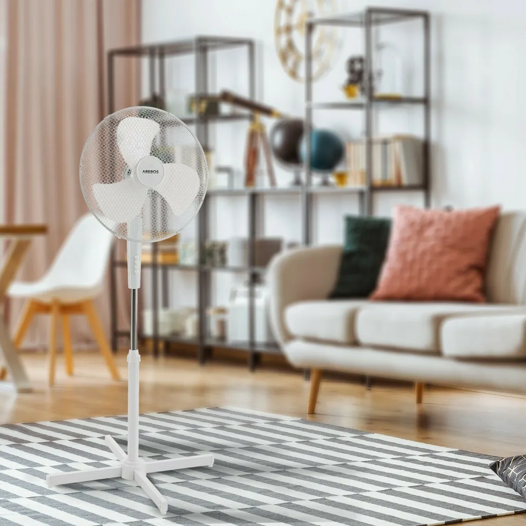 AREBOS Standventilator Turmventilator 45W, 80° Oszillation, 3 Geschwindigkeitsstufen, Leiser Betrieb, Weiß, Höhenverstellbar Bis 122 Cm, Bis 30° Neigbar
