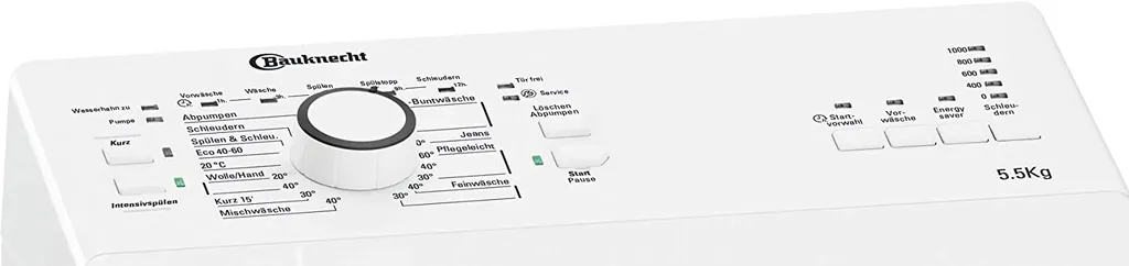Bauknecht WAT Prime 550 SD N Toplader-Waschmaschine / 5,5 Kg / 1000 UpM/Kurz 15 /Startzeitvorwahl/leise Mit 60dB/ Mehrfachwasserschutz +/Kurz-Taste, Weiß