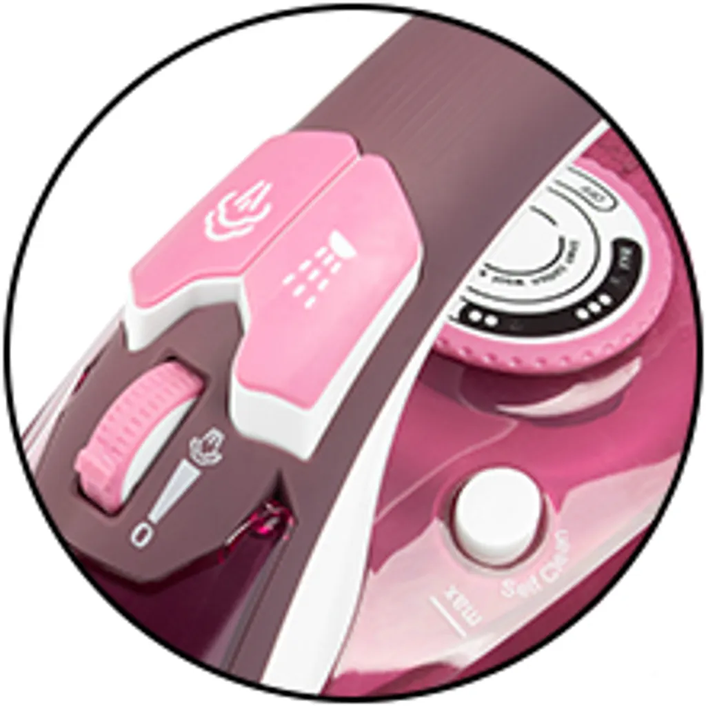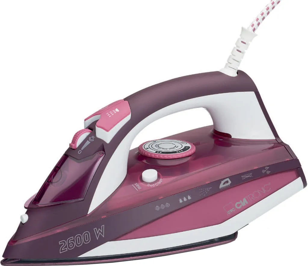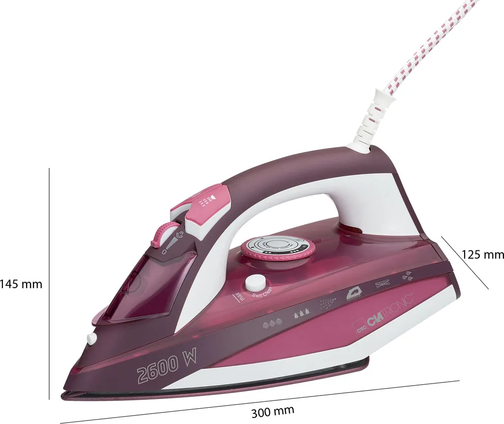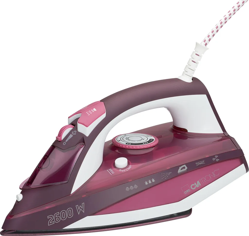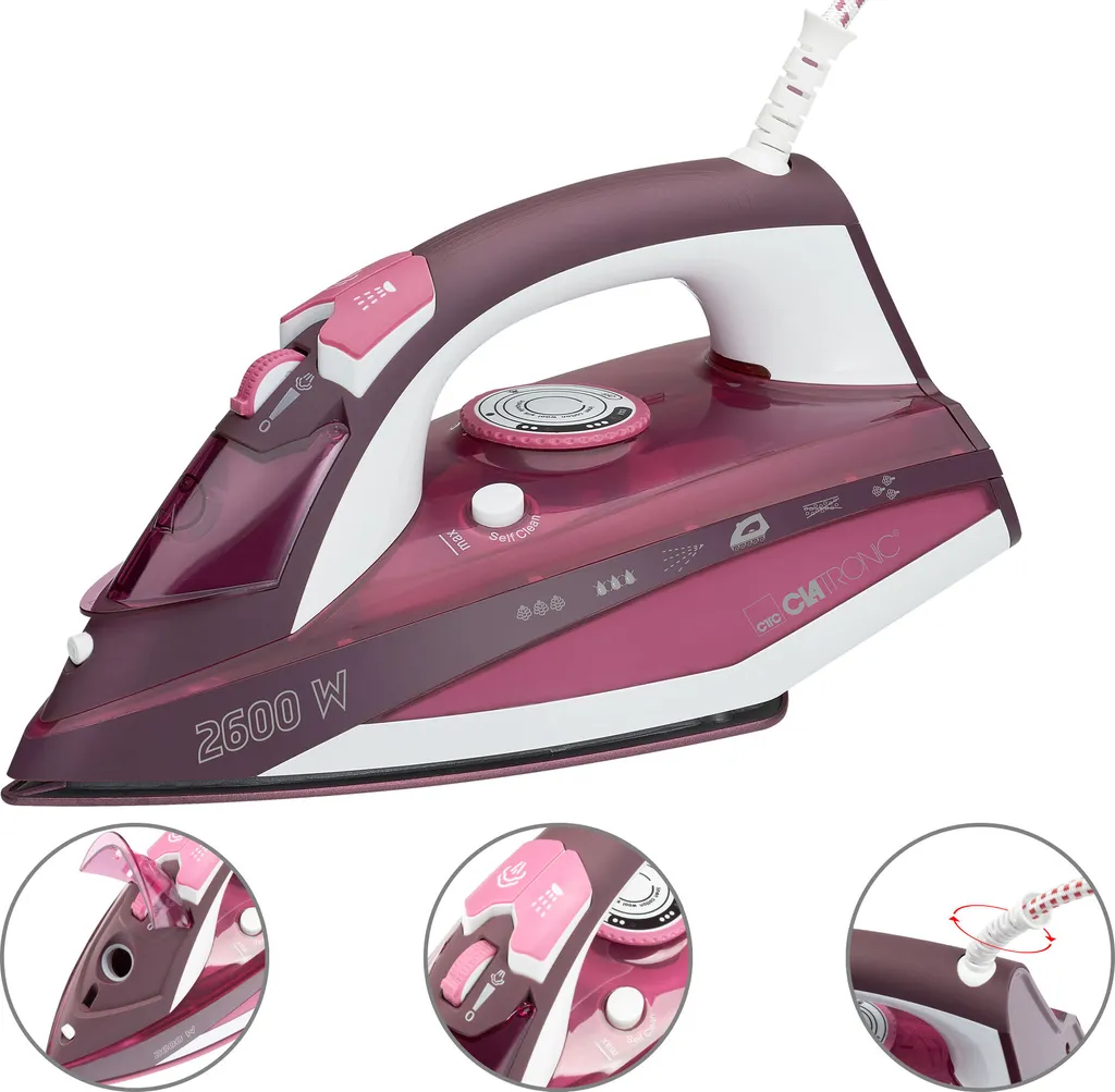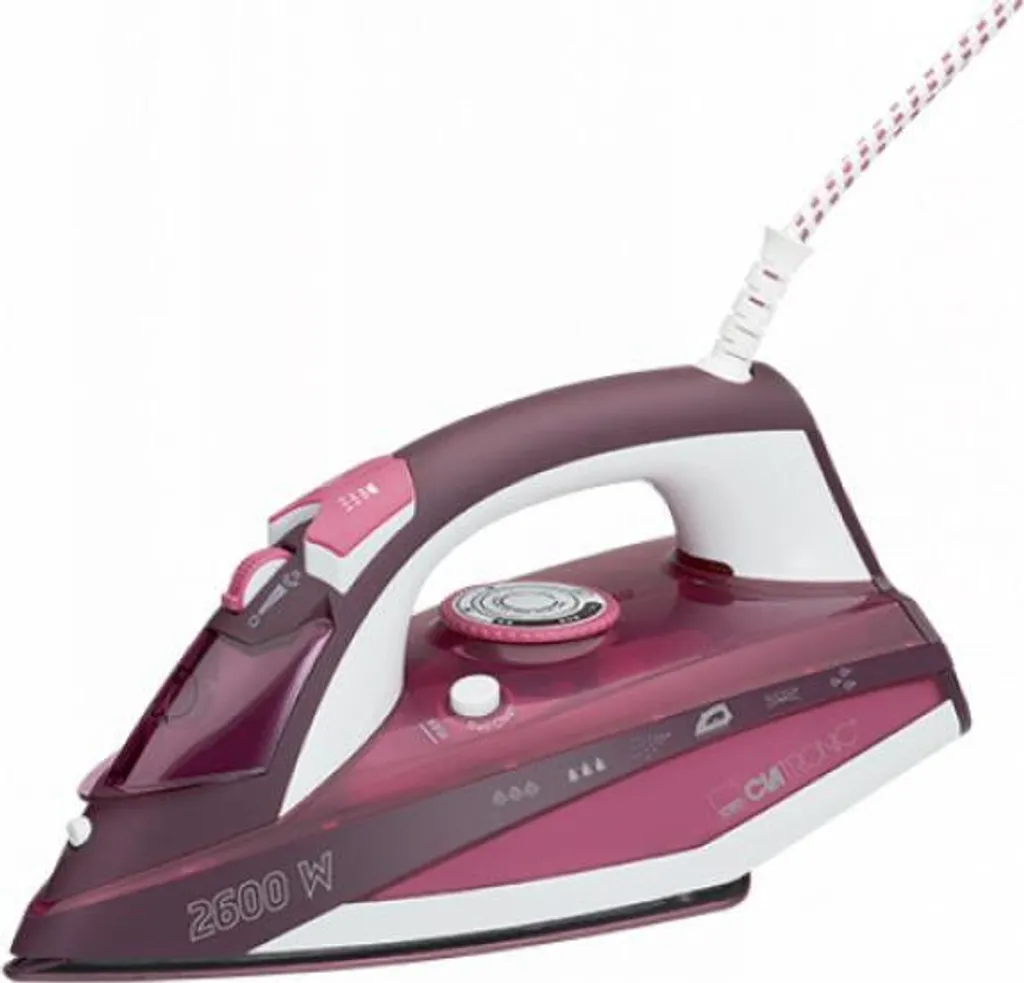 Clatronic Dampfbügelautomat DB 3705, 2.600 W, Kratzfeste Keramiksohle, Stufenlose Temperatur, 4-stufige Dampfregelung, 7 Funktionen, Weiß/rot