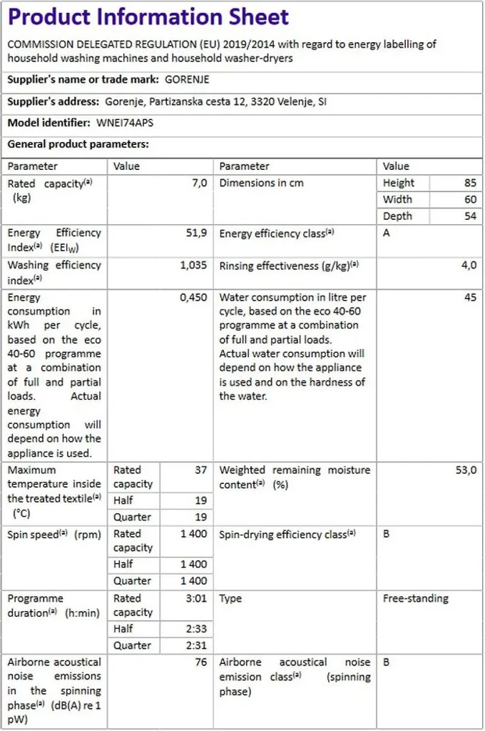 Gorenje WNEI 74 APS Waschmaschine Mit Dampffunktion – 7 Kg Fassungsvermögen – 1400 U/min – 16 Programme – Inverter Motor – Edelstahltrommel – AquaStop – Kindersicherung – SterilTub – Weiß