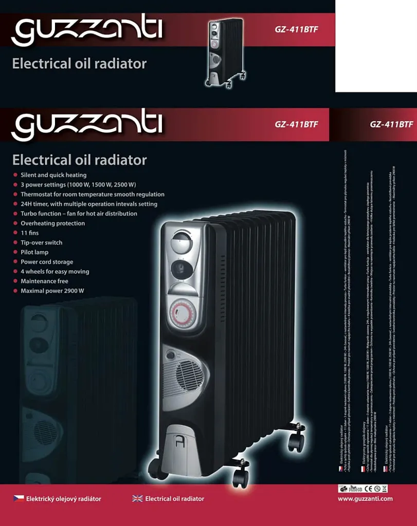 Guzzanti GZ411BTF, Öl-Heizlüfter, Öl, Indoor, Flur, Schwarz, Drehregler