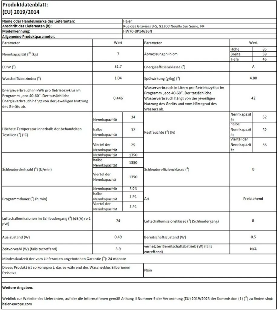 Schreibe die erste Rezension für „Haier HW 70 BP 14636 N, Frontlader, 7 Kg, B, 75 DB, 1400 RPM, A“ Antwort abbrechen