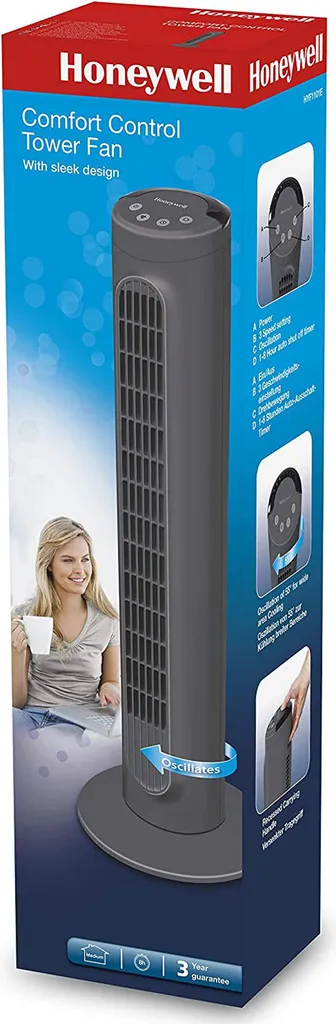 Honeywell HYF1101E4 Comfort Control Turmventilator, 55°-Oszillation, Timer, 3 Stufen, 36 Watt, Anthrazit