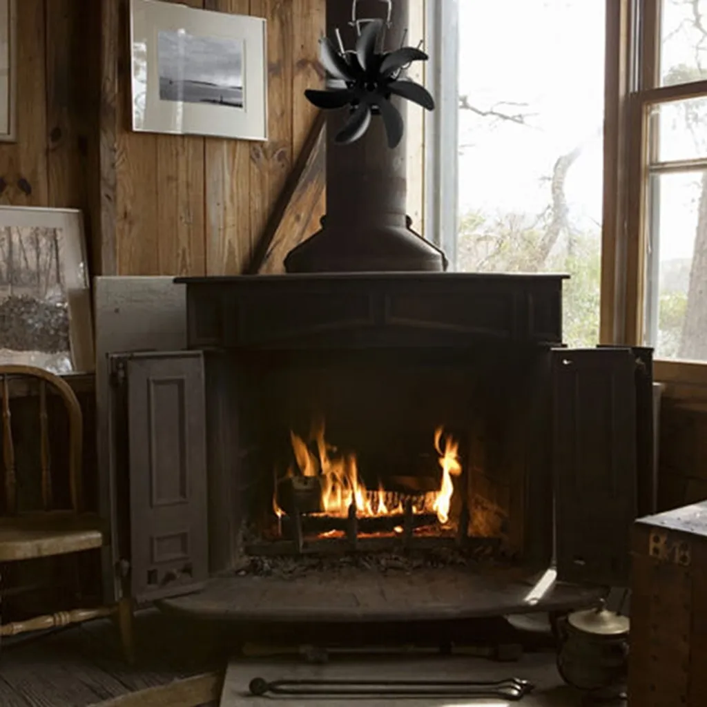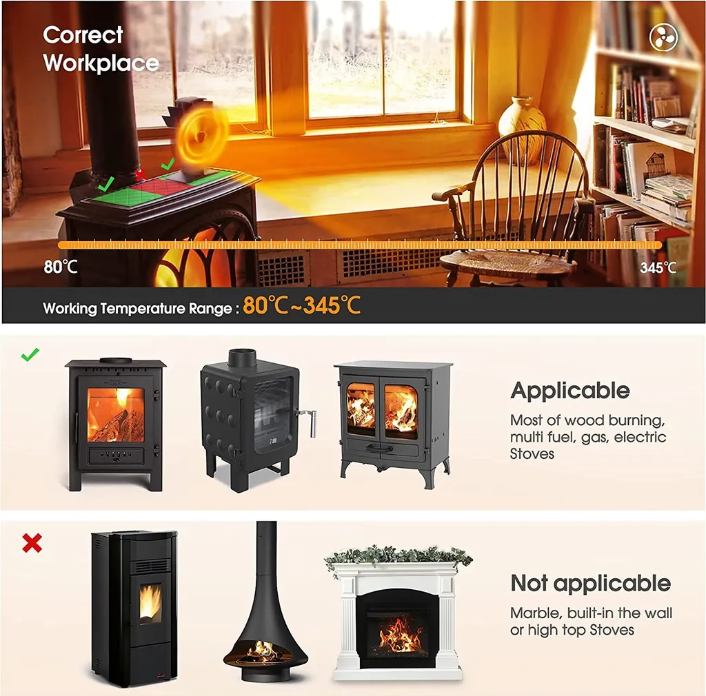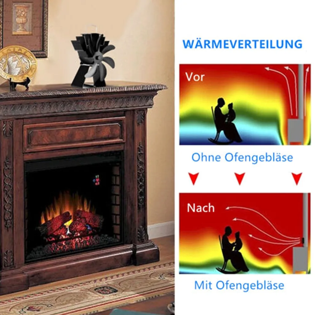 Kaminventilator Ofenventilator Kaminofen Ventilator Ohne Strom 7 Blatt Heizlüfter Ventilator Fan Stromloser Kaminofen (Grau)