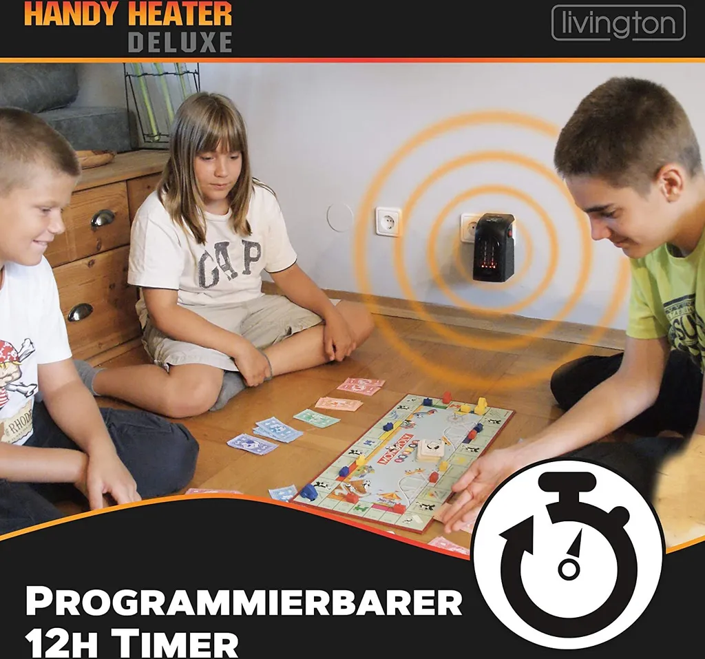 LIVINGTON Handy Heater 370 Watt Mit Fernbedienung | Keramik Heizlüfter | Mini-Steckdosen-Heizer | Schnellheizung | Thermostat 15°C – 32°C | Timer | Elektro-Heizung | Das Original Aus Dem TV