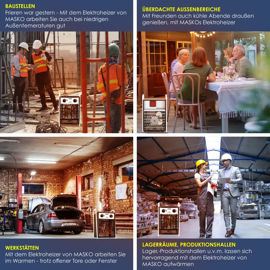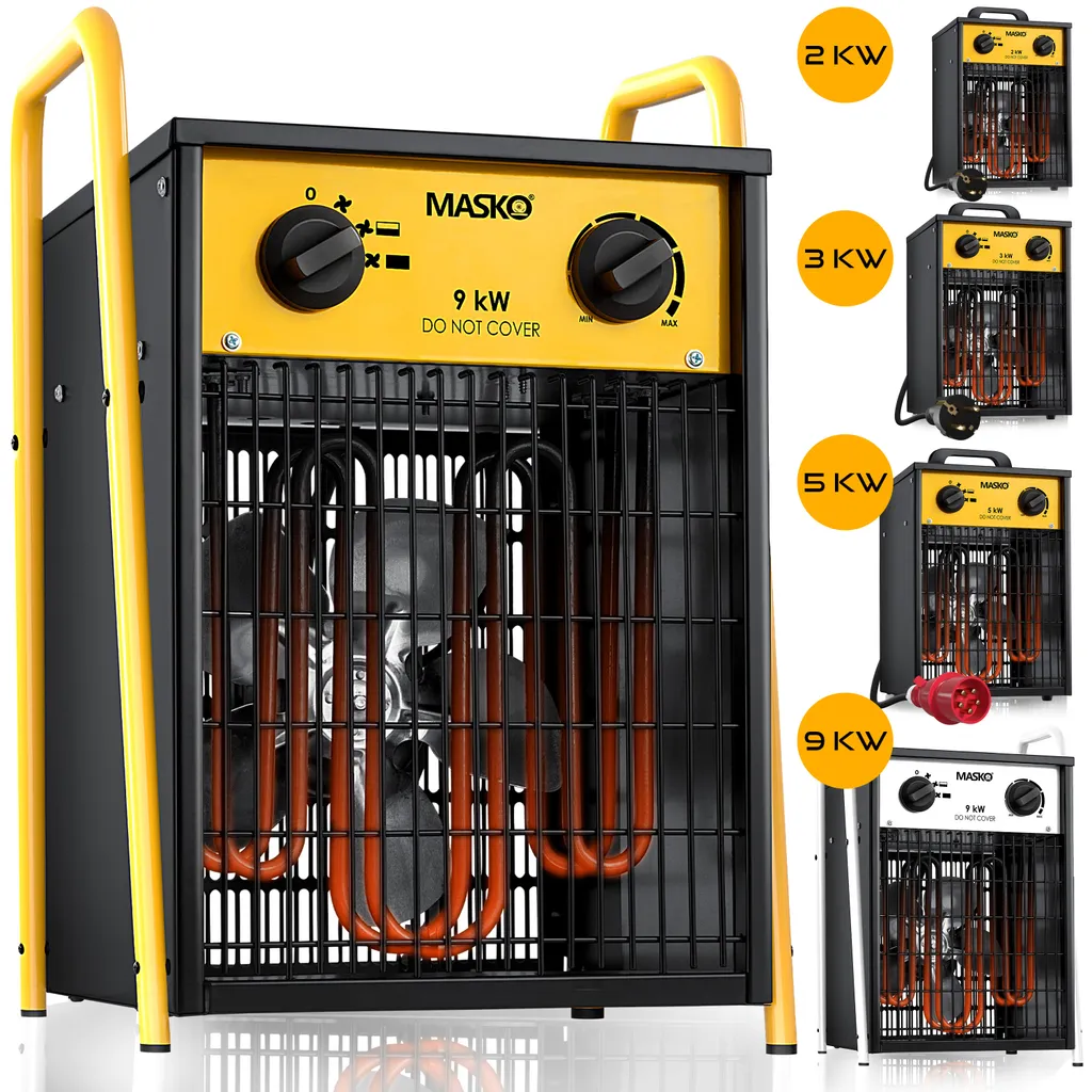 MASKO® Elektroheizer Heizlüfter Bauheizer Mit Integriertem Thermostat Elektrisch Heizgerät Mit 3 Heizstufen Heizgebläse Für Innen- Und Außeneinsatz Überlastschutz Elektroheizgebläse , Farbe:Weiß, Größe:9 KW