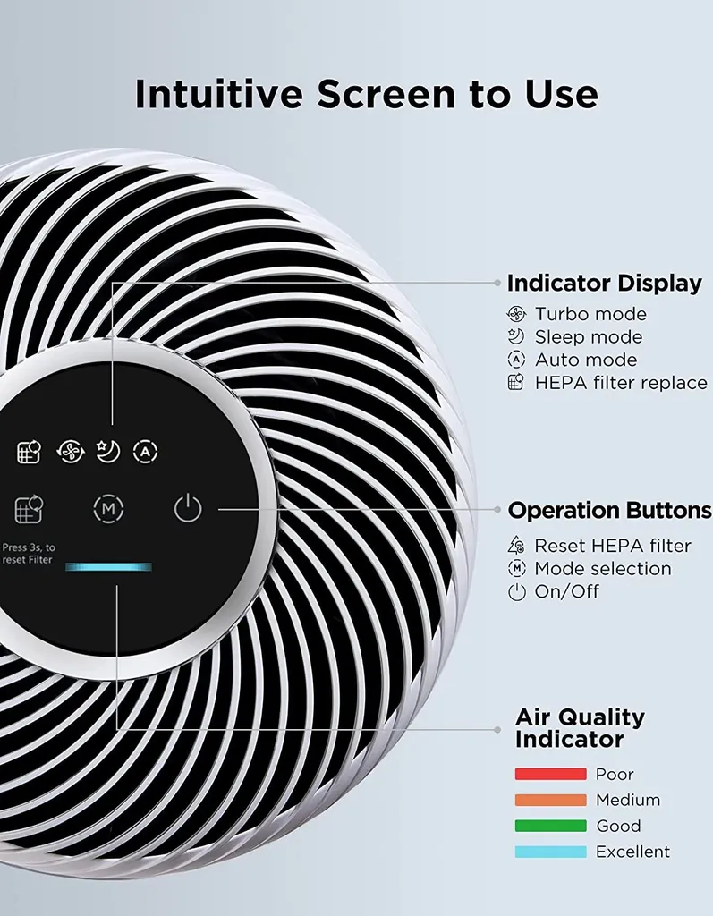 MINI MAX Luftreiniger, 35m² In Nur 10 Minuten Air Purifier H13 HEPA Filter Mit 3 Lüfterstufen Gegen 99,97% Bakterien Staub Pollen Rauch Partikel, Aktivkohlefilter 22dB Leiser Schlafmodus