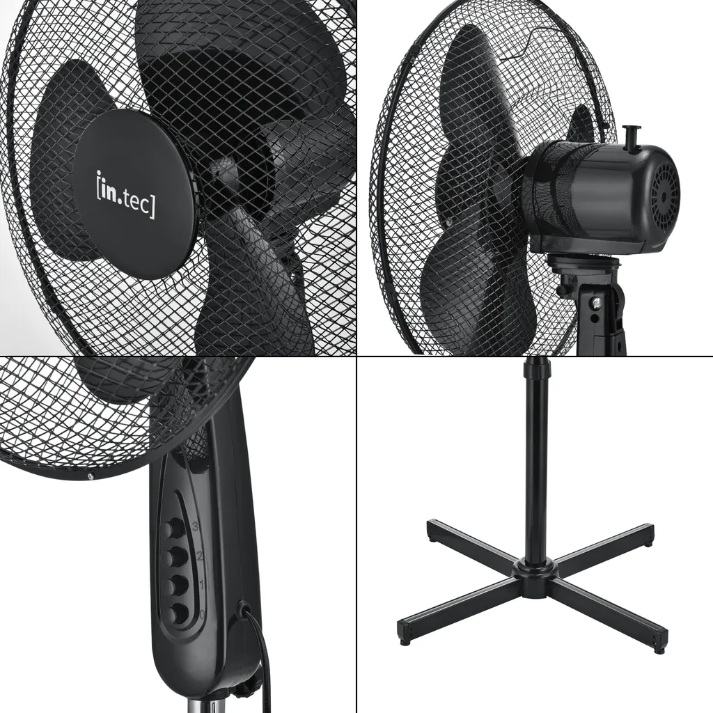 Standventilator Durchmesser 41cm Ventilator Mit 3 Stufen Luftkühler Windmaschine Oszillation 50W Schwarz [in.tec]