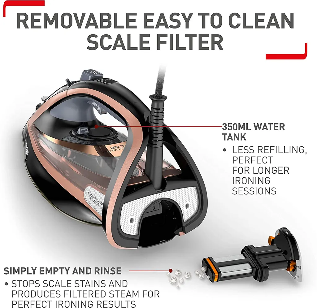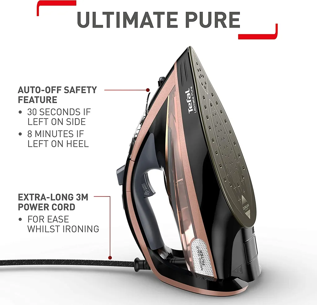 Tefal Ultimate Pure FV9845 Dampfbgeleisen (Dampfbgeleisen, Durilium Autoclean Soleplate, 3 M, 260 G/min, Schwarz, Kupfer, 60 G/min)