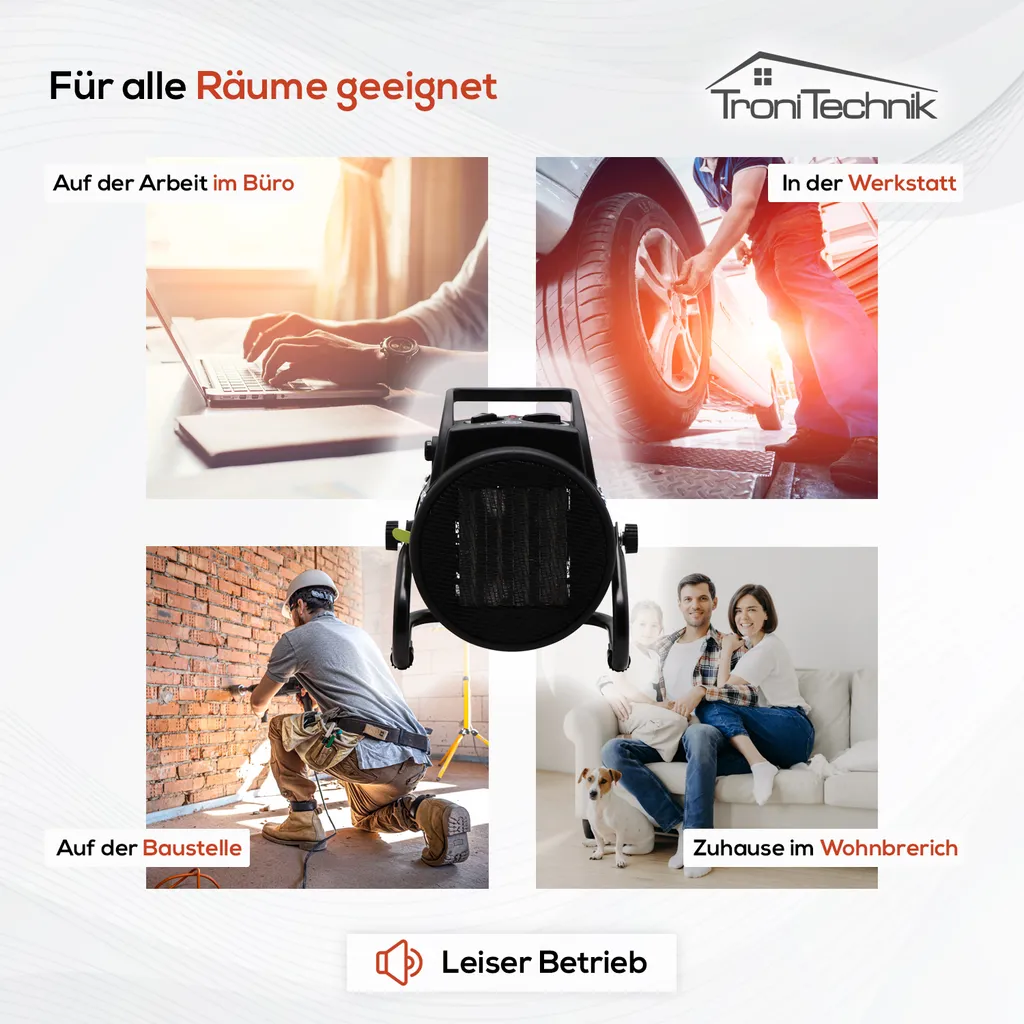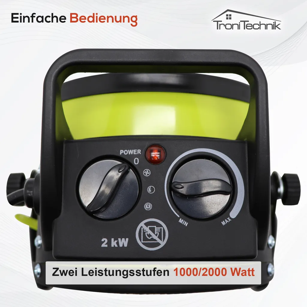 Tronitechnik TT-KH-502 Keramikheizer Heizlüfter Heizung 2.000 Watt, Tragegriff, PTC Keramik, Stufenlose Thermosteuerung